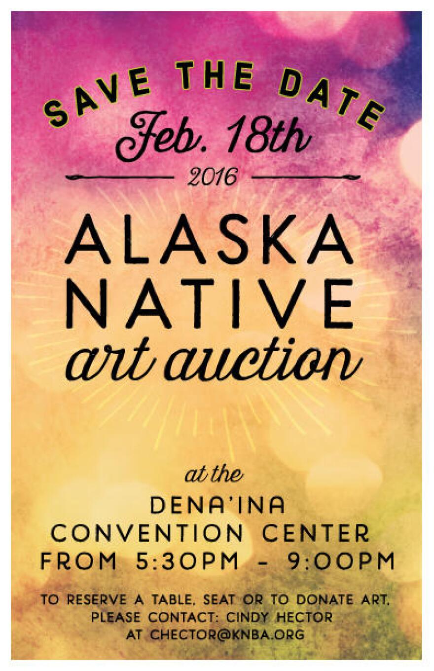 This year's big event will be Thursday February 18, 2016 from 5:30pm to 9:00 pm at the Dena'ina Center in downtown Anchorage. To reserve a table, seat or to donate Art, please contact Cindy Hector at (907)793-3528 or chector@knba.org.