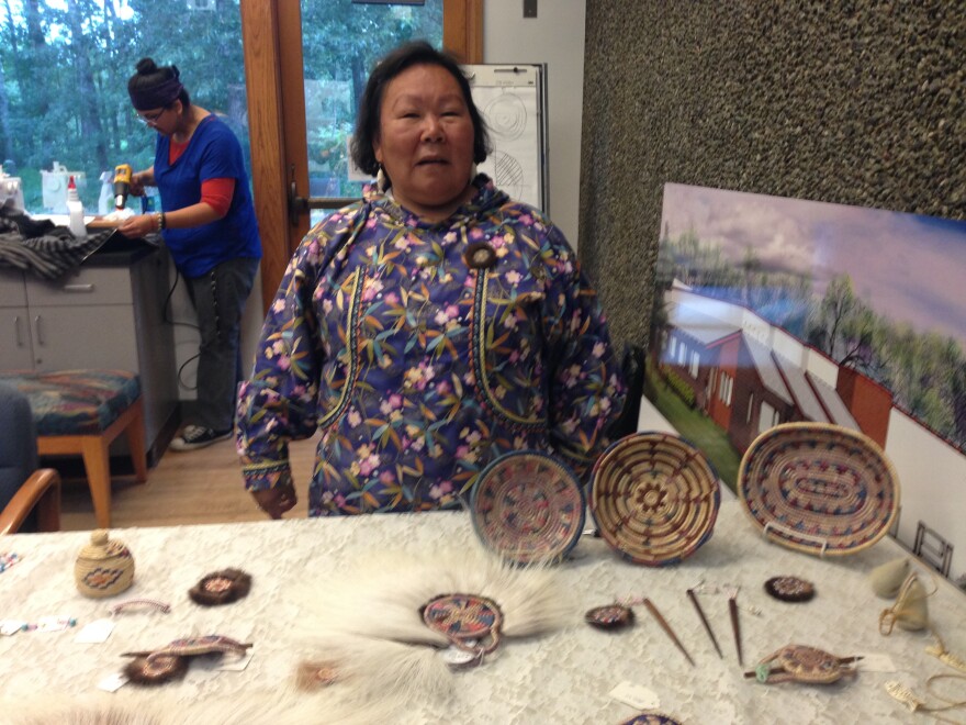 At the Alaska Native Heritage Center, Cupik Elder Emily Johnston is teaching interns how to make dance fans of woven sea grass, fur, and long strands of reindeer hair. She's one of several artists teaching at the Center through September. Later this week. we'll hear from two more of the artists.