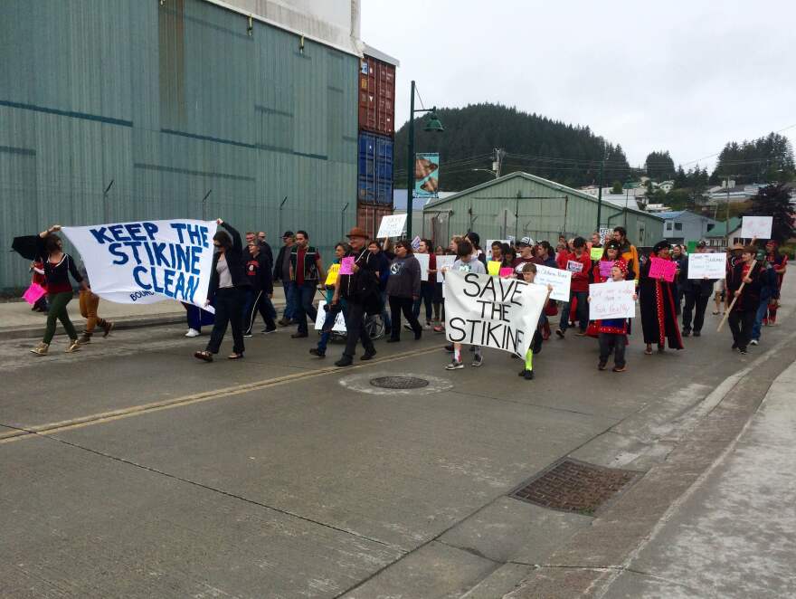 About 100 people marched through Wrangell behind a banner that read “Keep the Stikine Clean.”